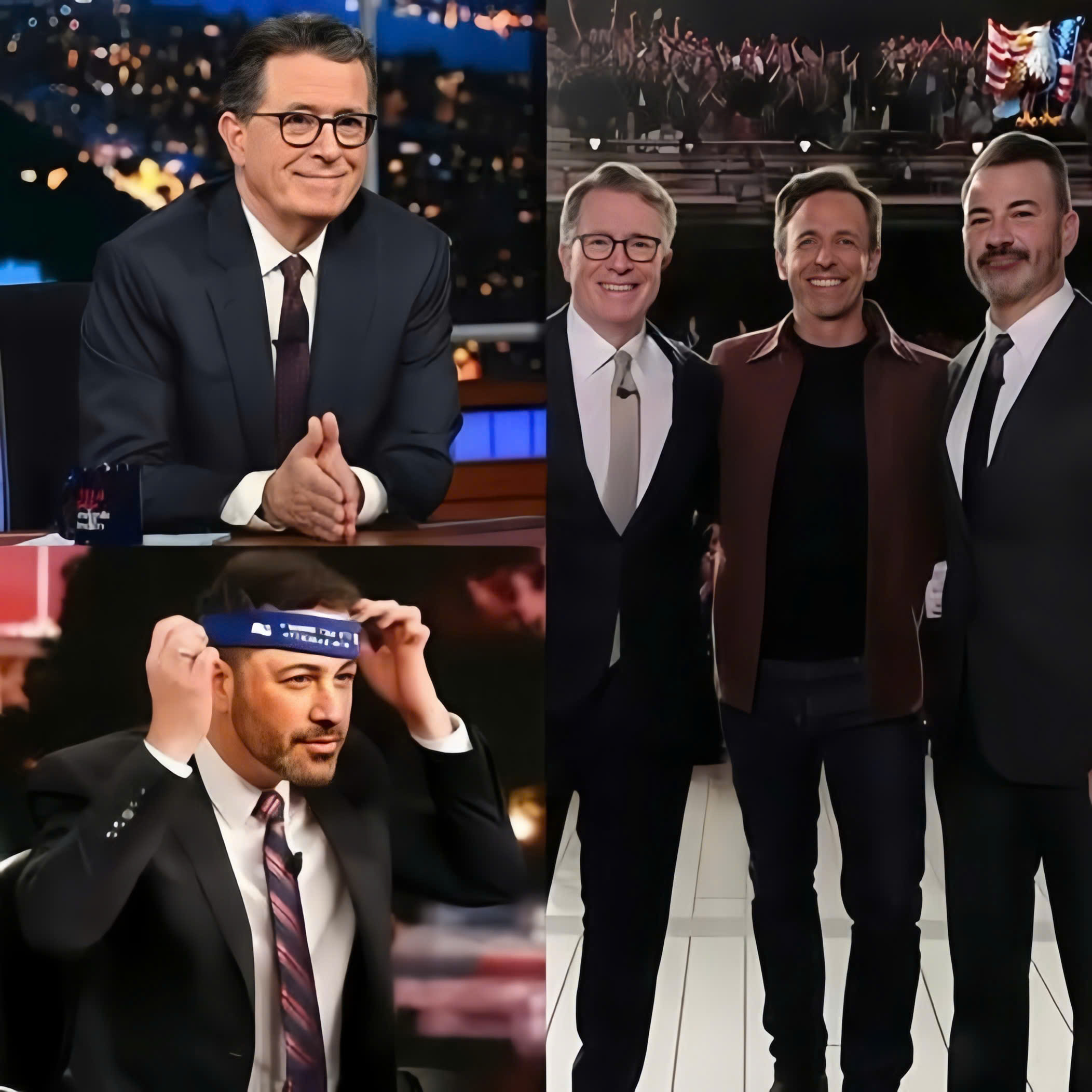 Three men — Jimmy Fallon, Stephen Colbert, and Jimmy Kimmel — walked onstage together, visibly tense yet united by something deeper than camaraderie. Within minutes, they detonated the announcement that would redefine the very soul of late-night television.